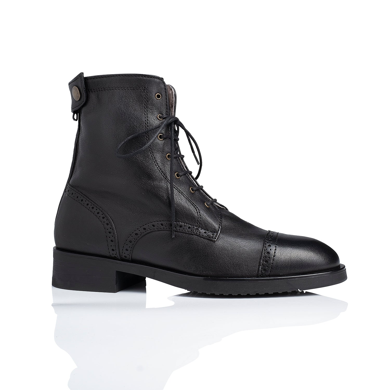 All boots are our R_1110 style and have a back zipper and functional front lacing, with baroque style punching on the toe and seams. The entire inside of this paddock boot is sheepskin lined! Not a single spot is without cozy warmth.
